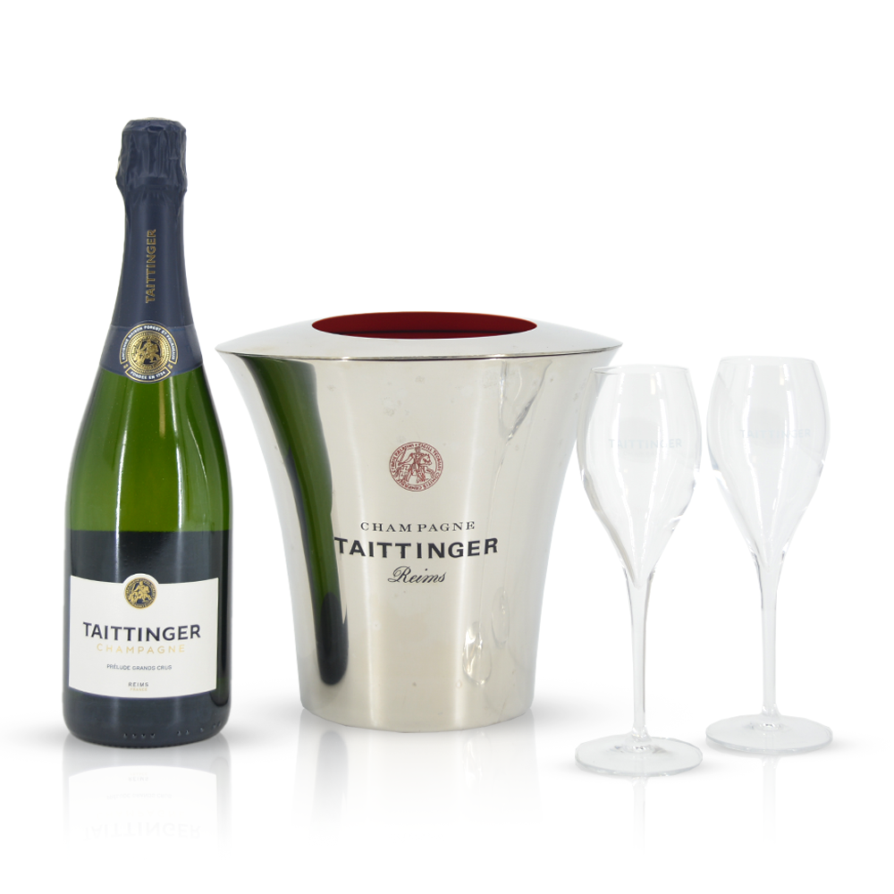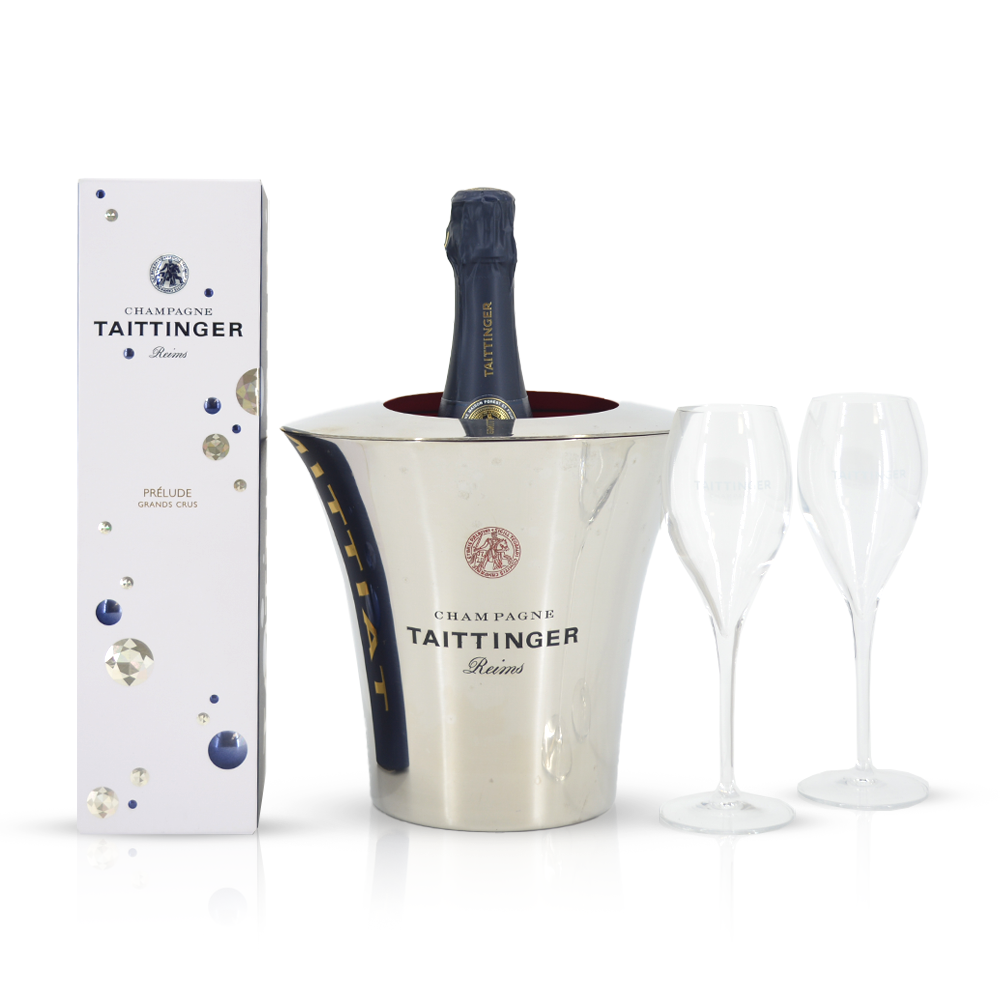Taittinger Prelude Grands Crus met 2 glazen en originele vintage cooler